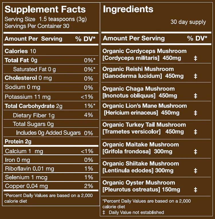 These mushrooms are dual-extracted to ensure high levels of beta-glucans (at least 30%), which are essential for their health benefits. Ultimate Shrooms is designed to enhance immune function, brain health, natural energy levels, and detoxification